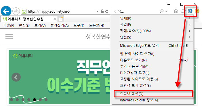 4) 모든 브라우저 닫고 재실행 > https://happy.eduniety.net 접속